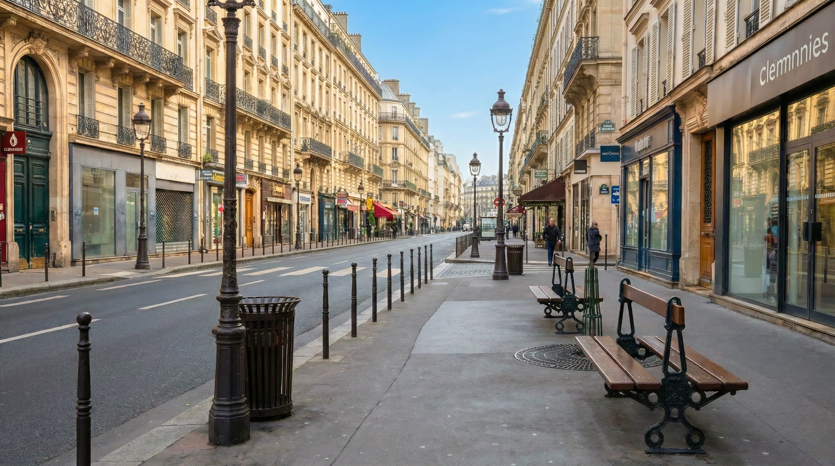 Pourtant les bancs Davioud cèdent la place à des bancs standards. Les réverbères parisiens magnifiques sont remplacés par des modèles que l'on retrouve partout. Les grilles circulaires, en fonte, au pied des arbres ont laissé la place à des modèles carrés en tôle ; les corbeilles de rue qui laissent les ordures visibles à travers un sac plastique transparent. Le fonctionnalisme a remplacé l'esthétique.